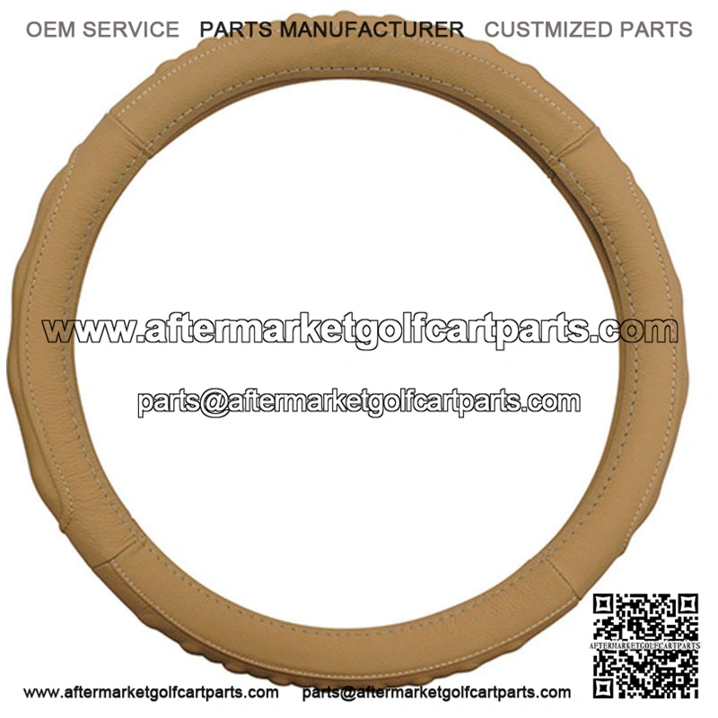 Golf Steer Leather Steering Wheel Cover. Fits 01+, Club Car 11+ and Star. Size: 13.25″-13.60″. Color: Beige. High quality, durable genuine leather construction. Elegant styling while protecting clothes from steering wheel rub. Provides relief and comfort for arthritic hands.