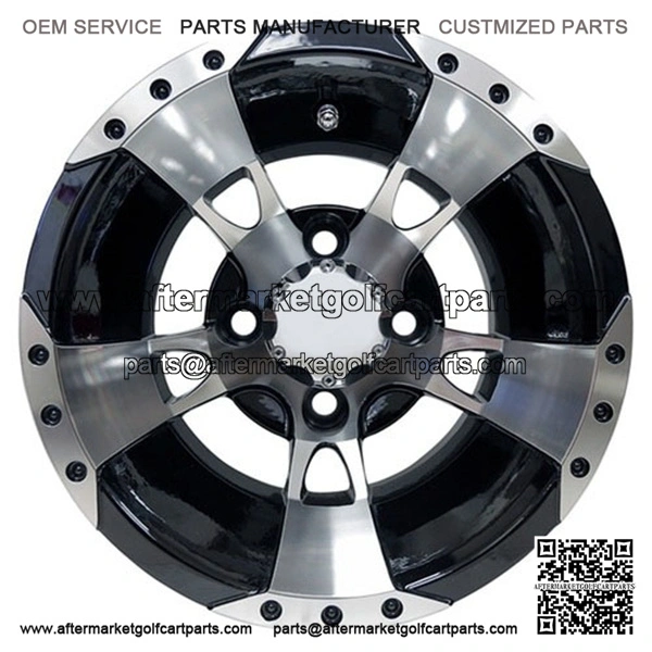 10″ Golf Cart Rim, Machined/Black Wheel & Center Cap, 10×7 ET-25 Aluminum wheels include center caps. Lug nuts sold separately. PRODUCT INCLUDES 1 RIM.