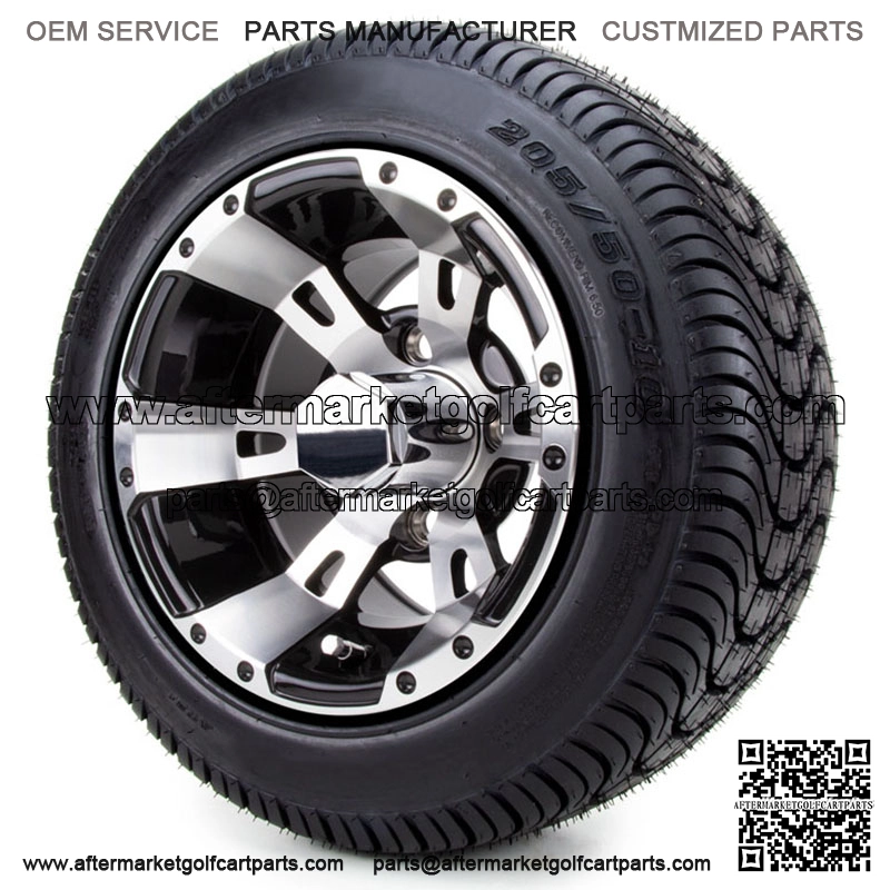 10″ Machined Black – Tires and Wheels Combo Details: Set of 4 mounted golf cart tires and wheel assemblies Optional Lug Nuts – Chrome 4 Center Caps Machined Black Wheels 10×7 with 4×4 bolt pattern ET -15.5 offset Tire Options: (Not Sure What Fits Check out our Tire Guide) Arisun Cruze 205/50-10 Arisun Cruze 205/65-10