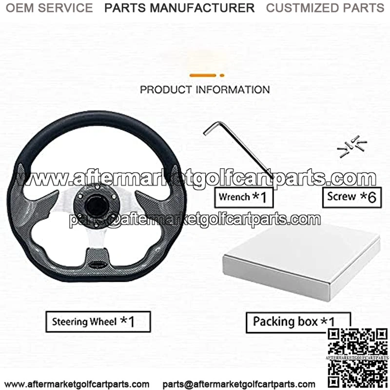 12.5 Inch Diameter Cool Universal Steering Wheel Fits EZGO TXT RXV, Club Car DS Precedent, Yamaha G29 Drive Golf Cart Steering wheel adapter hub needs to be purchased separately! Must be installed with Adapter (Required and sold separately) The golf steering wheel is made of carbon fiber material combined with high-quality metal, which is light and durable as a whole, showing the texture Golf Carts steering wheel is fully surrounded by Leather, breathable, sweat-absorbent, non-slip and wear-resistant, and feel comfortable Will work on any golf cart that has an adapter with a standard 5 or 6 bolt patterngolf cart steering wheel adapter sold separately