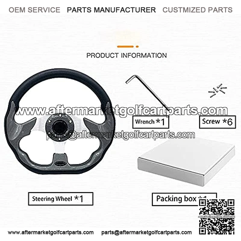 12.5 inch Golf Cart Steering Wheel For EZGO Yamaha Club Car DS and Precedent Carbon Fiber Golf Carts Steering Wheel with Wrench