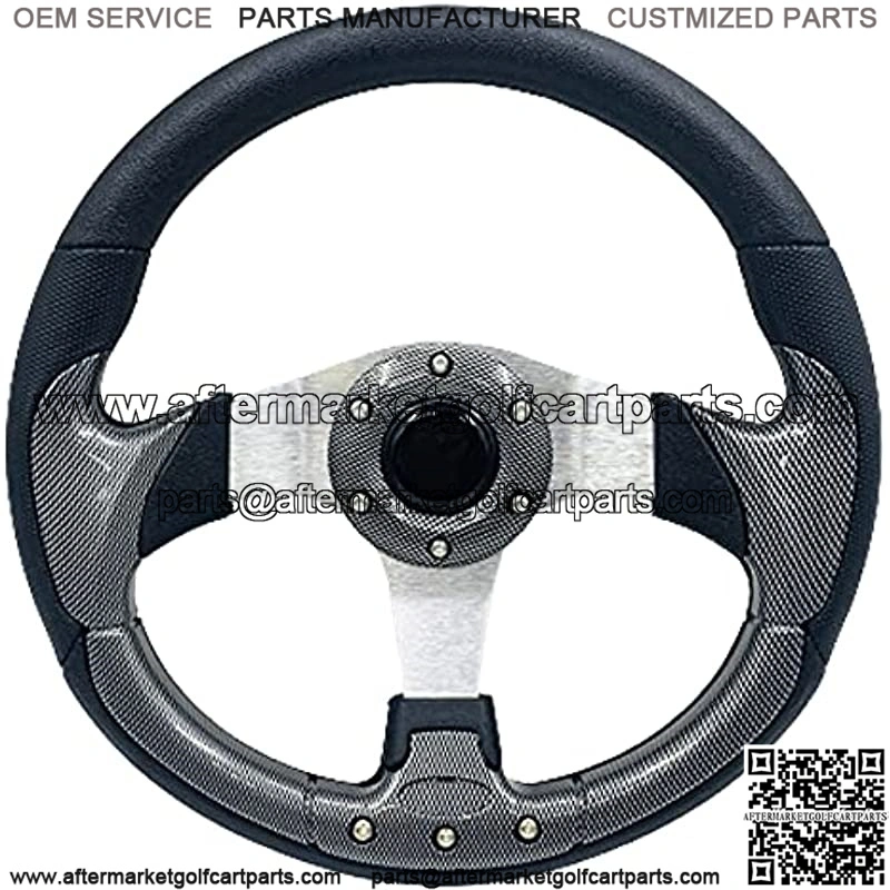 12.5 Inch Diameter Cool EZGO Steering Wheel Fits EZGO, Club Car and Yamaha golf carts Golf Cart Steering Wheel Adapter Hub needs to be Purchased Separately! Must be installed with Adapter (Required and sold separately) Car Sport Steering Wheel is made of Carbon Fiber Material Combined with High-Quality Metal, which is light and durable as a whole, showing the texture The Golf Cart Steering Wheel is Fully Surrounded by Leather, breathable, sweat-absorbent, non-slip and wear-resistant, and feel comfortable Racing Steering Wheel Will work on any golf cart that has an adapter with a standard 5 or 6 bolt patterngolf cart steering wheel adapter sold separately