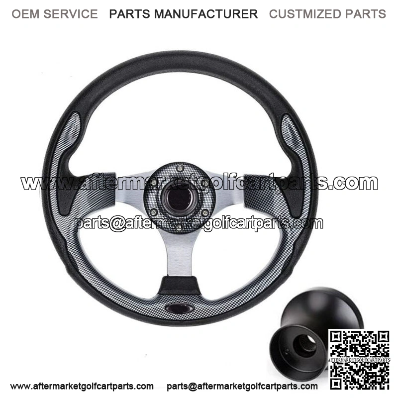 12.5inch Golf Cart Steering Wheel with Black Hub Adapter for Club Car DS Carts- 12.5″ Carbon fiber golf cart steering wheel and Black 5/6 hole steering wheel adapter fits Club Car DS only;- The decor of this golf cart steering wheel is inspired by professional racing cars. By replacing this steering wheel with its nice racing style look, your golf cart will look new and stand out on the street.- Golf Cart Steering wheel brings a comfortable feel through the rounded and smooth grip that fits the curve of the human palm, so that your hands do not get tired of driving for a long time.- Golf Cart Steering wheel has hard aluminum spokes and Lightweight body made of PVC, wear-resistant, corrosion-resistant and 1-year warranty, which makes it last longer.- Easy to install: Come with upgraded nuts and wrench for 5 minutes quick installing this golf cart steering wheel and Club Car DS Black hub adapter. – Package: 1x Steering Wheel + 1 x 5/6 hole Steering Wheel Hub Adapter for Club Car DS.