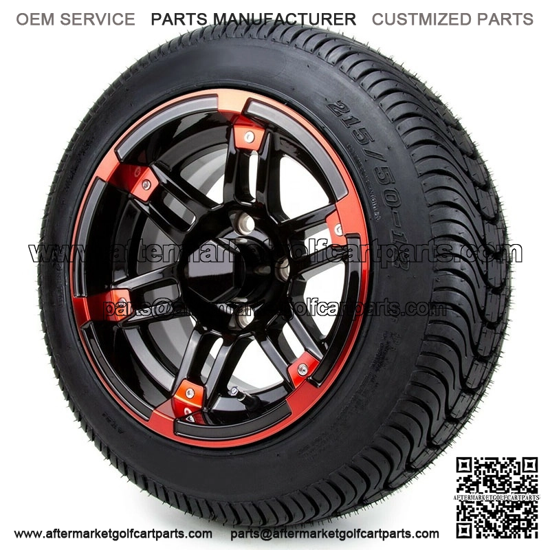 12″ Aftershock Red and Black Golf Cart Wheels and Tires (215-50-12) – Set of 4