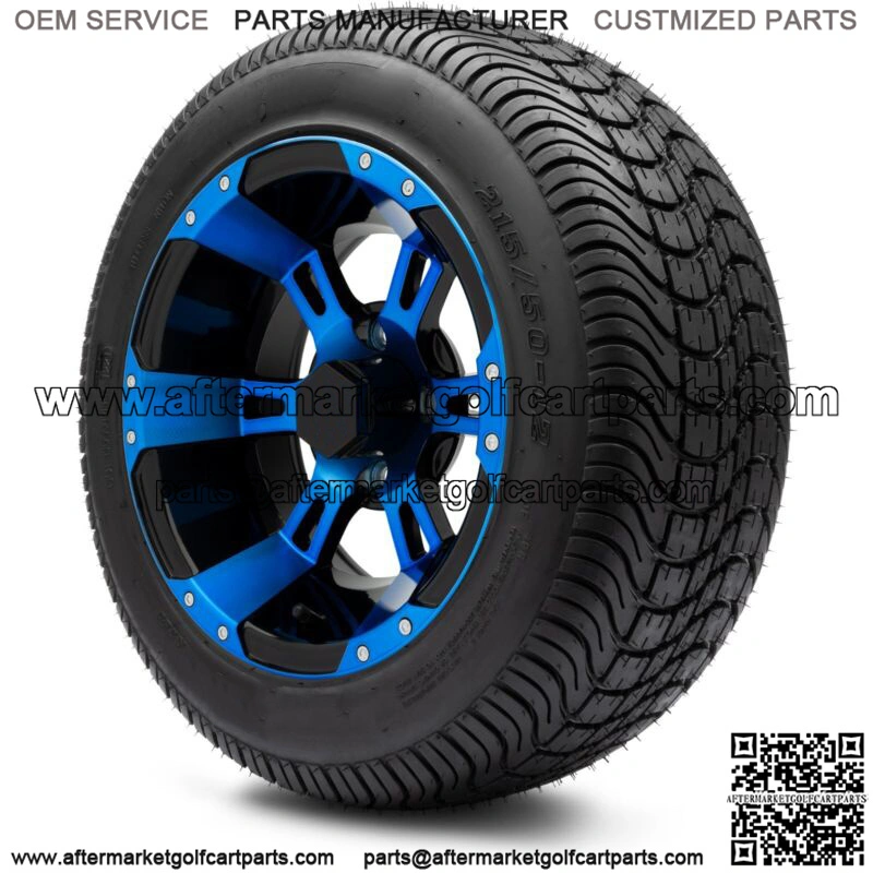 12″ Ambush Blue and Black Golf Cart Wheels and Tires (215-50-12) – Set of 4