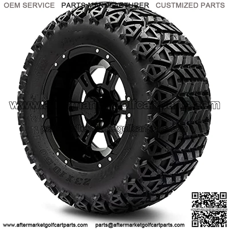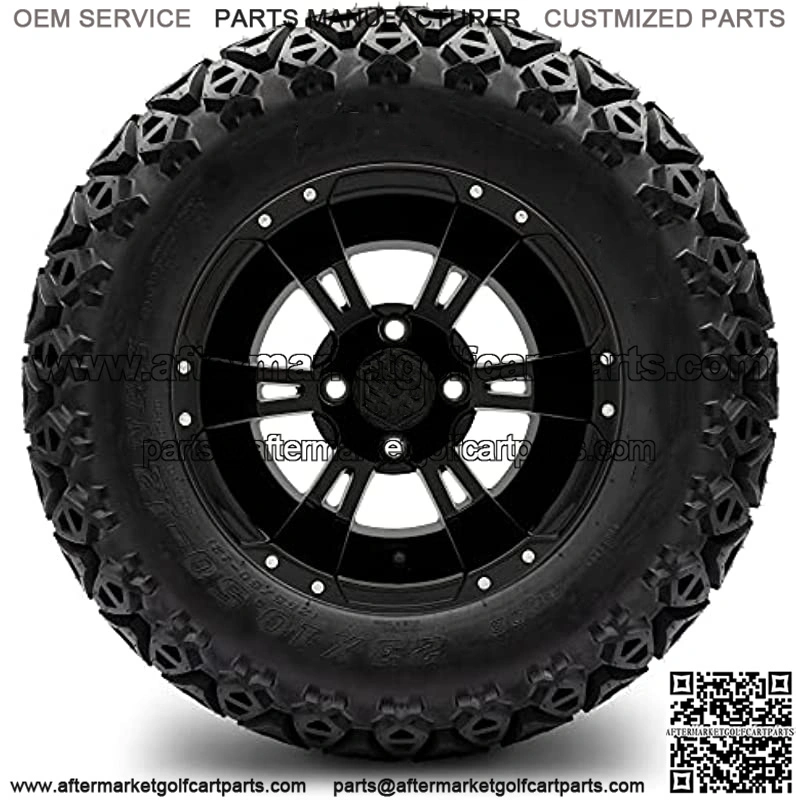 MODZ Ambush Glossy Black Golf Cart 12″ Wheels and Tires – All-Terrain ComboNOTE: This wheel and tire combo REQUIRES a 6″ Lifted golf cartGet the last style in MODZ wheels and make your golf cart stand out from the rest. The combo is for 4 mounted tires and wheels. All-Terrain Tires from Arisun.This Combo inclues:MODZ Ambush Glossy Black Wheels 12×7 with 4×4 bolt patternSet of 4 mounted golf cart tires and wheel assemblies16 Black Lug Nuts4 Center CapsWheel has ET -25 offsetTire option:X-Trail – 23×10.50-12