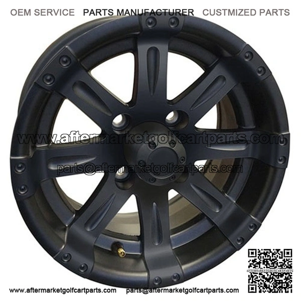 12″ Golf Cart Rim, Matte Black Wheel & Center Cap, 12×6 Centered Specially designed for golf car use. Eliminates water sling and fender rubbing. Fits inside wheel wells. Aluminum wheels include center caps. Lug nuts sold separately. PRODUCT INCLUDES 1 RIM.