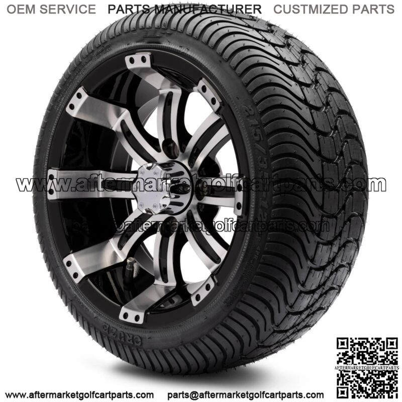 12″ Machine and Black Golf Cart Wheels and Tires (215-35-12) – Set of 4