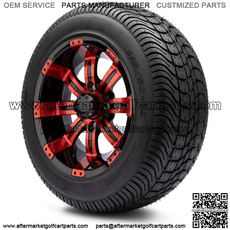 12″ Red and Black Golf Cart Wheels and Tires (215-50-12) – Set of 4