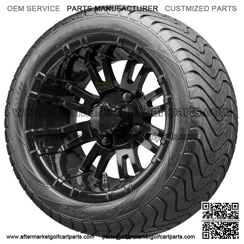 12” RX271 Black Wheels on your choice of Street Low Profile Tires Details: Set of 4 mounted golf cart tire and wheel assemblies 16 Black Lug Nuts 4 Center Caps Black RX271 Wheels 12×7 with 4×4 bolt pattern and ET-25 offset This combo will NOT require a lifted cart Tire Options: TIR-345 215/40-12 DOT 4 Ply TIR-372 215/35-12 DOT 4 Ply [$15] TIR-344 215/50-12 DOT 4 Ply [$30] TIR-342 225/55-B12 DOT 4 Ply [$75] 215/35-12 = 17.9″ Tall – 8.5″ Wide (fits all models) 215/40-12 = 18.5″ Tall – 8.5″ Wide (fits all models) 215/50-12 = 20.5″ Tall – 8.5″ Wide (fits RXV/TXT/Yamaha Drive without a lift) 215/55-B12 = 21″ Tall – 9.0″ Wide (fits RXV/Yamaha Drive without a lift) *Please select Standard (and Club Car) or Metric (Yamaha) Lug Nuts*