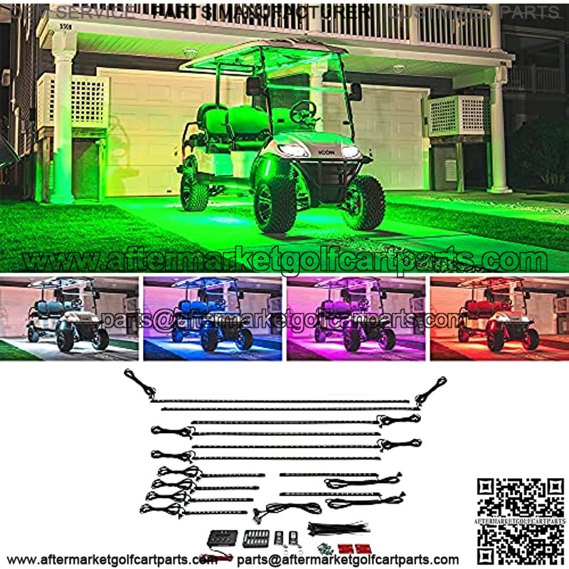 12pc Million Color SMD LED 6 Seater Limo Golf Cart Underbody Kit is the Total Lighting Package by Creating Vibrant Multi-Color Underglow, Canopy & Wheel Well Lighting that’s Compatible with Any Electric or Gas Powered Stretch Golf Cart