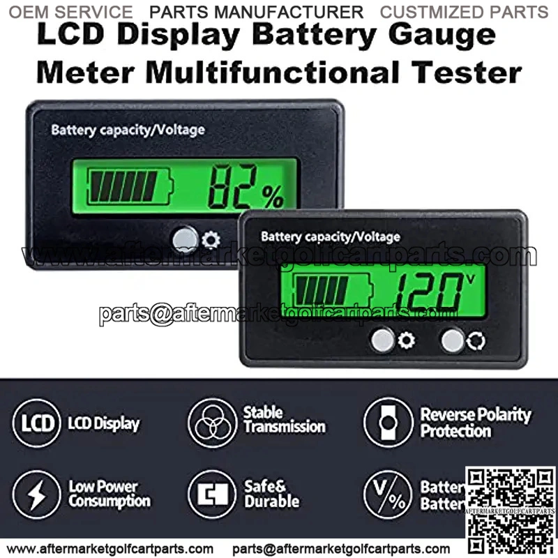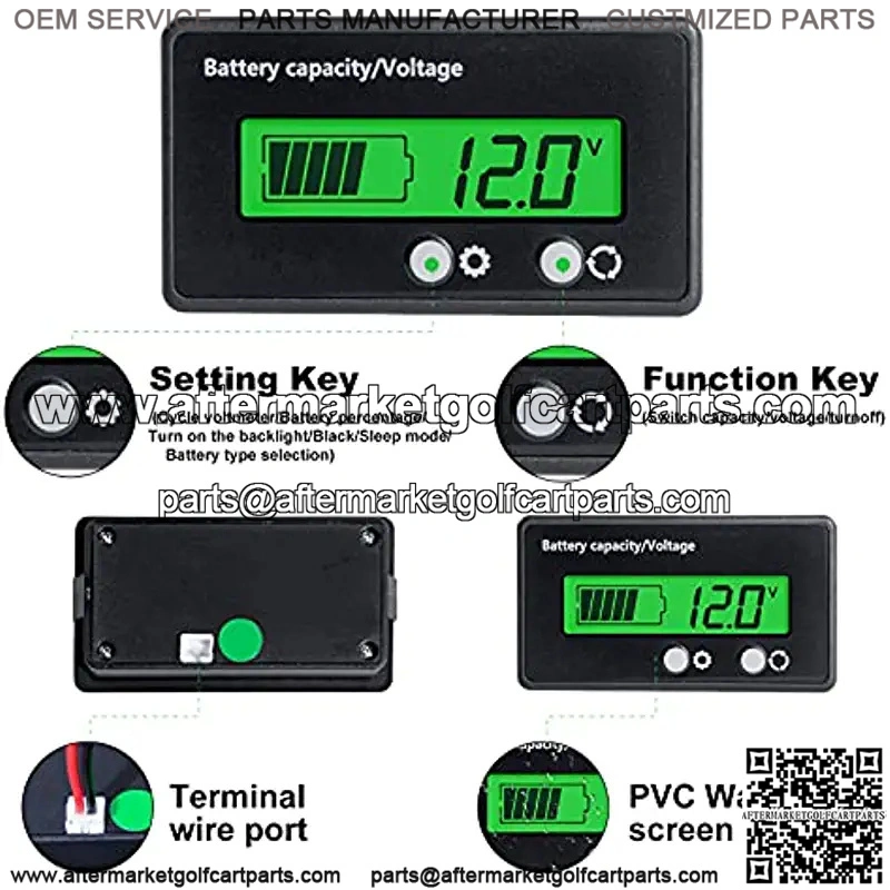 12V 24V 36V 48V Battery Capacity Indicator Golf Cart Voltage Meter with LCD Display Green Backlight, Waterproof Monitor Gauge Digital Voltmeter Testers for 3S-26S Lithium Battery&Lead-Acid Batteries