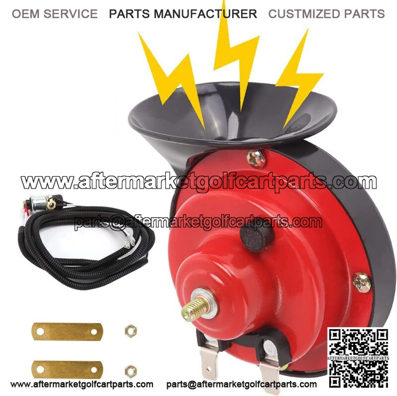 12V Golf Cart Horn with Switch Button Kit for EZGO Club Car Yamaha UTV ATV Boat- Universal Electric horn kit for any 12V application,could be widely used on Golf Carts EZGO,Club Car ,Yamaha and UTV, ATV, Boat or Scooters;- Loud Enough to get people’s attention and Volume Adjustable (the black button on backside is for Volume Control,people could rotate it when power connected,very convenient);- Complete golf cart horn kit includes wiring harness, mounting brackets,floor horn button and horn;- High quality components for long lasting durability ,Factory Price for your money saving;- This is a great addition to our golf cart; Package includes: 1x Golf Cart Horn.