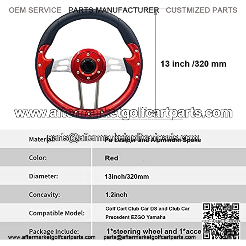 13″ Golf Cart Steering Wheel Red For EZGO, Club Car and Yamaha Most Golf Carts