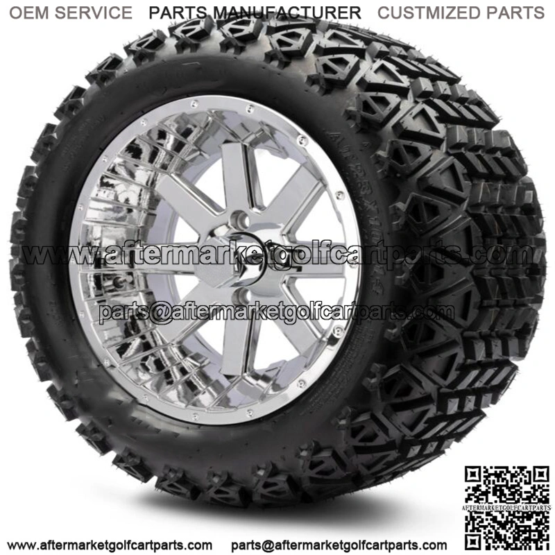 14″ Assault Chrome Golf Cart Wheels and Tires (23×10.00-14) – Set of 4