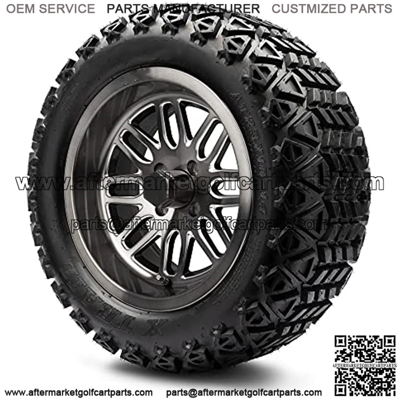 14″ Mayhem Brushed Gunmetal Ball Mill Wheels and Arisun (23×10-14) DOT Golf Cart Tires Combo
