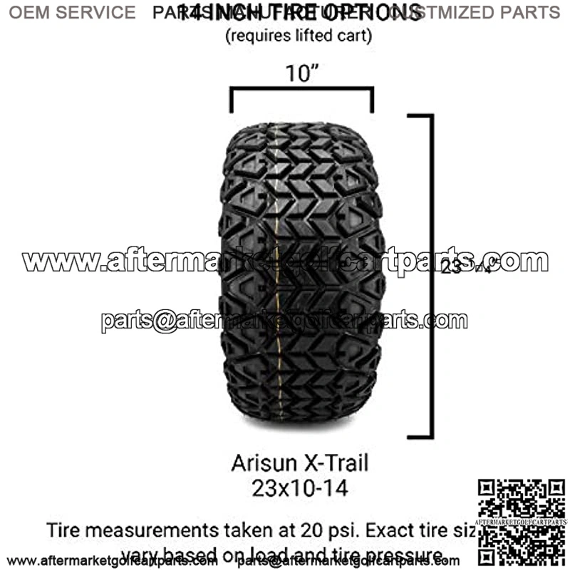 14″ Mayhem Wheels (Choose Color) and Arisun (23×10-14) DOT Tires ComboDetails: Set of 4 mounted golf cart tires and wheel assemblies.16 Optional Lug Nuts and 4 Center Caps.14″ Mayhem Wheels (Choose Color) and Arisun (23×10-14) DOT Tires Combo 14×7 with 4×4 bolt pattern.Must have a lift kit of 6″ or higher. This combo will NOT fit on non-lifted carts.ET -25 offsetTire Options: 23×10-14 Arisun