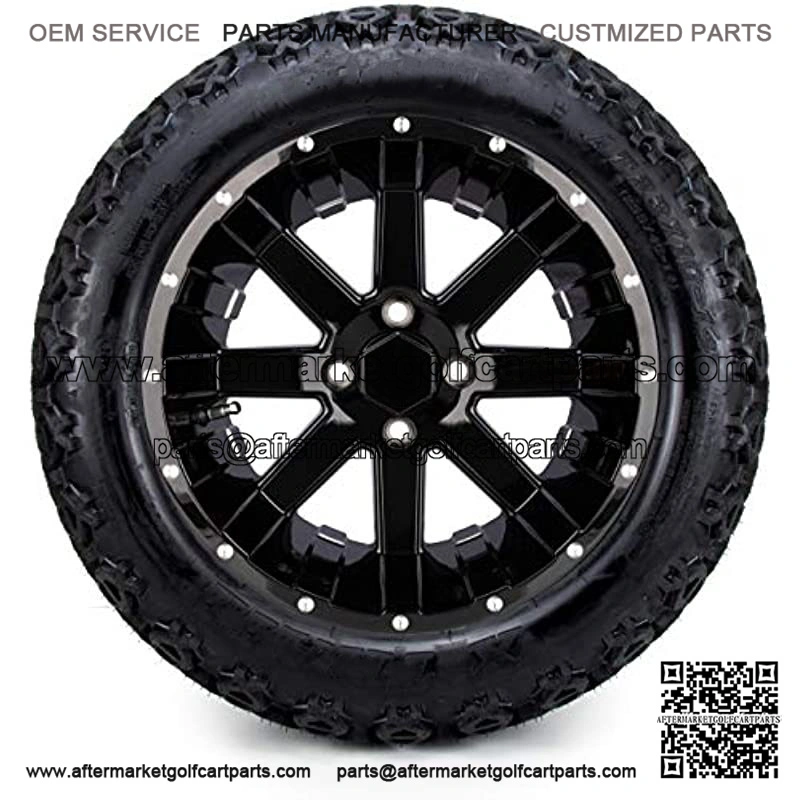 MODZ Assualt Black w/ Mill Ball Golf Cart 14″ Wheels and Tires – All-Terrain Combo of 4