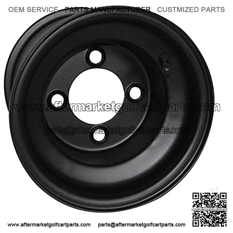 Includes: (4) BLACK Steel OEM Golf Cart Wheels (centered offset) (4) 18×8.5-8 DOT Golf Cart Tires