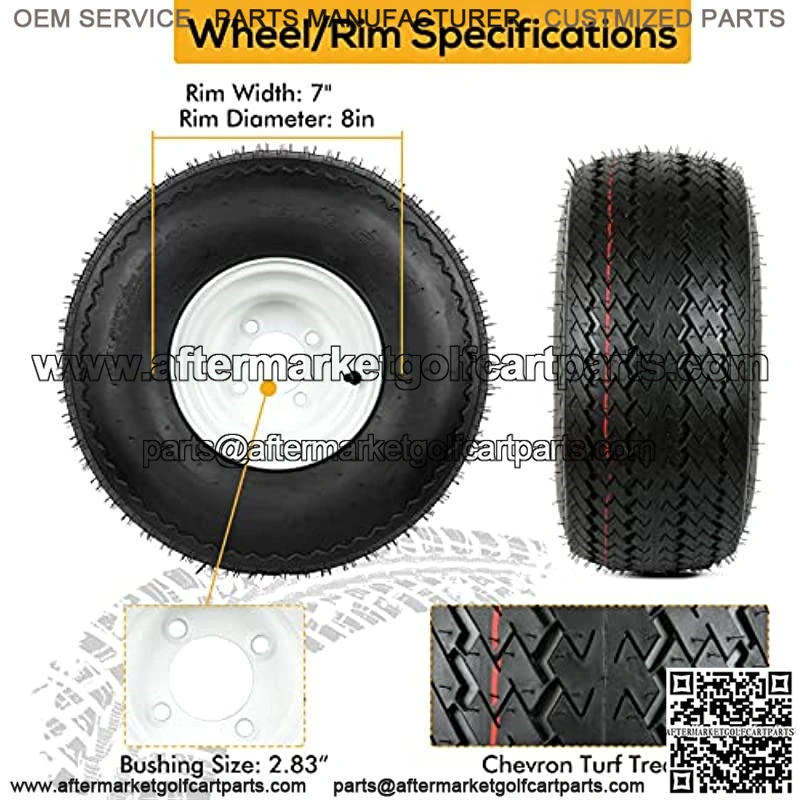 2 PCS 18×8.50-8 Golf Cart tire with wheel, Tubeless, 4 ply. PSI: 22, Tire Outer Diameter: 18.3inch; Section Width 8.46in; Rim Diameter 9in; Rim Width 7.5in;