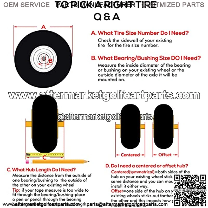 Prior to purchase, please check your existing tire sidewall for tire, hub and bushing size to ensure proper replacement fit.