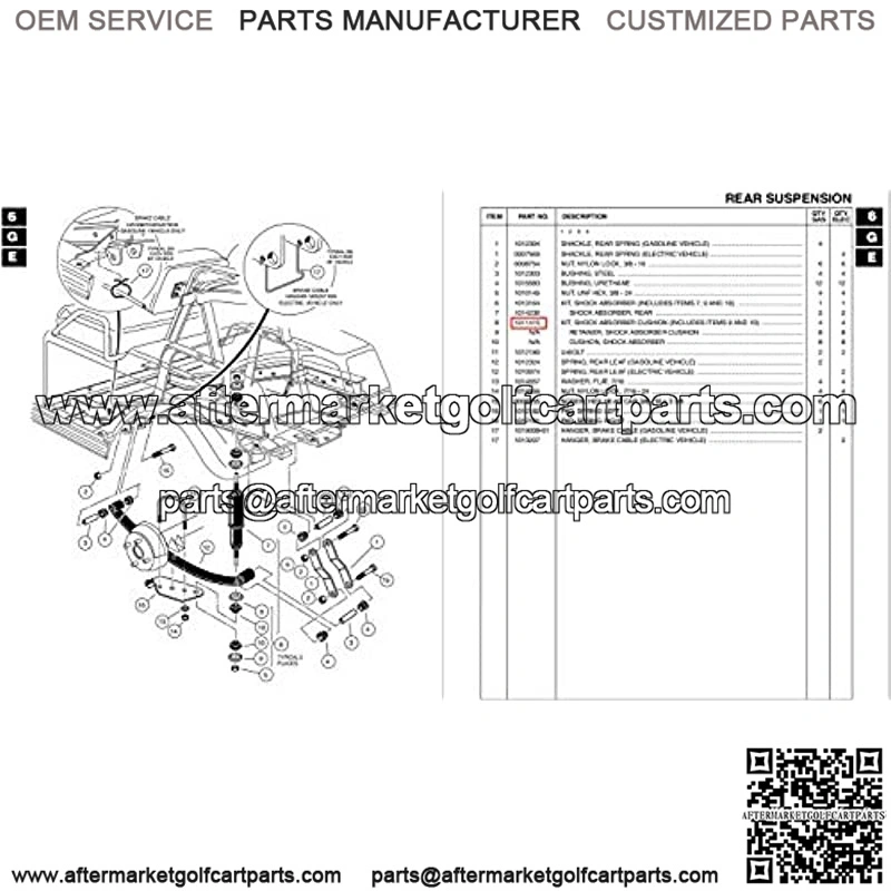 2 golf Cart Shock Bushing Kits DOES 1 SHOCK The Set Will Do1 Shock With 2 Threaded StuUsed on 1982 & Up & Precedent Gas & Electric Vehicles Kit includes: 4 Shock Bushings, 4 Shock Washers, 2 3/8″ Hex nuts OEM # refer: 1010142 & 1011415
