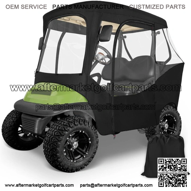 2 Passenger Golf Cart Enclosures for Club Car DS Precedent, 600D Driving Rain Cover- Golf Cart Enclosure perfect fit Club Car DS and Precedent 2 passenger models;- 2 Passenger golf cart enclosure size: 59L x 48W x 57H inch ; Pls DOUBLE CHECK your golf cart size before buying(Only fit original models ,NOT suitable for modified carts).- Durable superior 600D PVC coated Oxford and high-level double stitching, protects your golf cart against rain, wind, snow, dust, scratch and other harsh weather situations;- Four-sided weather protected fabric walls with super-clear window material, provides you the best visibility. Updated with roll-up windshield can be stored in the front pocket;- Zippered roll-up doors open to the side for easy entry and separate rear panel zips to acceclubs. Unique large side mirrors openings to ensure your driving safety- The golf cart driving enclosure cover is easy to put on and take off. No tools required, only need few minutes to be fully assembled.