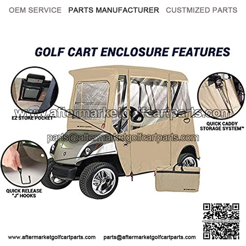 Greenline Drivable Golf Cart Enclosures are perfect for avid golfers, allowing for continued play even if bad weather threatens to strike. Super clear PVC windows provide maximum visibility and heavy-duty vinyl doors give full protection from the rain, wind and other weather conditions. . This enclosure is specifically designed to fit all Yamaha Drive Golf Carts with or without windshields. No tools required! Installs in minutes! Doors roll up independently so you can keep them open or closed. Easy rear access for golf clubs or groceries. Includes windshield that can be rolled up if your cart is already equipped with one.