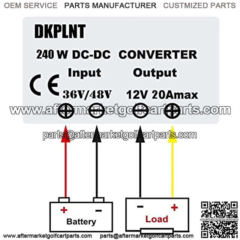 Input Voltage Range: 30-60V DC(36V/48V) Output Voltage: 12V(Fixed Output), Output Current:20A, Output Power:240w, High Conversion Efficiency: up to 97% Protection: Built in over-load, over-current, over-temperature and short-circuit protection. Design: It s more durable to use with Aluminum shell and silicone sealed. Application: High power 240w for car truck vehicle, golf cart, led strip light, screen, monitoring system, motor and DIY etc.