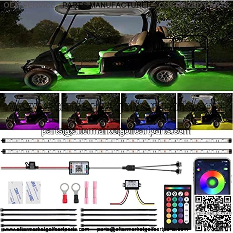 ontrol Modes, Multiple Lighting Effectsanage your golf cart LED lights via the intuitive upgraded app or 24 keys RF remote. You can choose 16 million different RGB colors and adjust various lighting modes(such as flowing, Jump, running, runback) to create a unique, dynamically colored bicycle, make your golf cart safe and cool-looking.