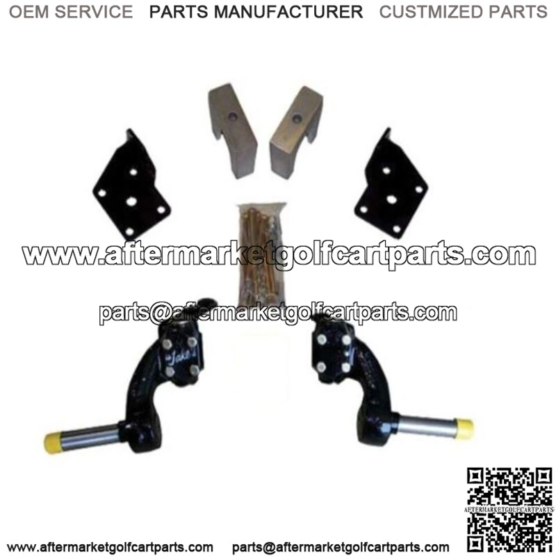 . 3″ Spindle Lift Kit . Fits STAR, Zone & Fairplay Golf Carts 2005-2016 . Fits ELECTRIC** golf cart models only . Jake’s spindles are the strongest, safest & easiest lift kits to install . Brand new spindle lift kit to replace stock suspension . Cast from ductile iron, 3X stronger than gray iron . Cast design gives superior strength compared to welded spindle kits . Pre-drilled to accept Jake’s hydraulic front brake kit . Squares up the cart for added stability . Lengthens wheelbase . No cutting or welding . Patented design .