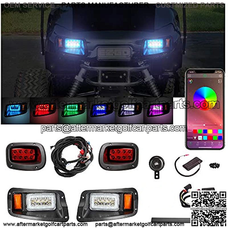 3 Version Golf Cart LED Headlight and Tail Light for EZGO TXT Freedom Carts (12V-48V) with Turn Signals Kits, Safe Daytime Running Lights & Multi Color App Bluetooth Control Light Kits