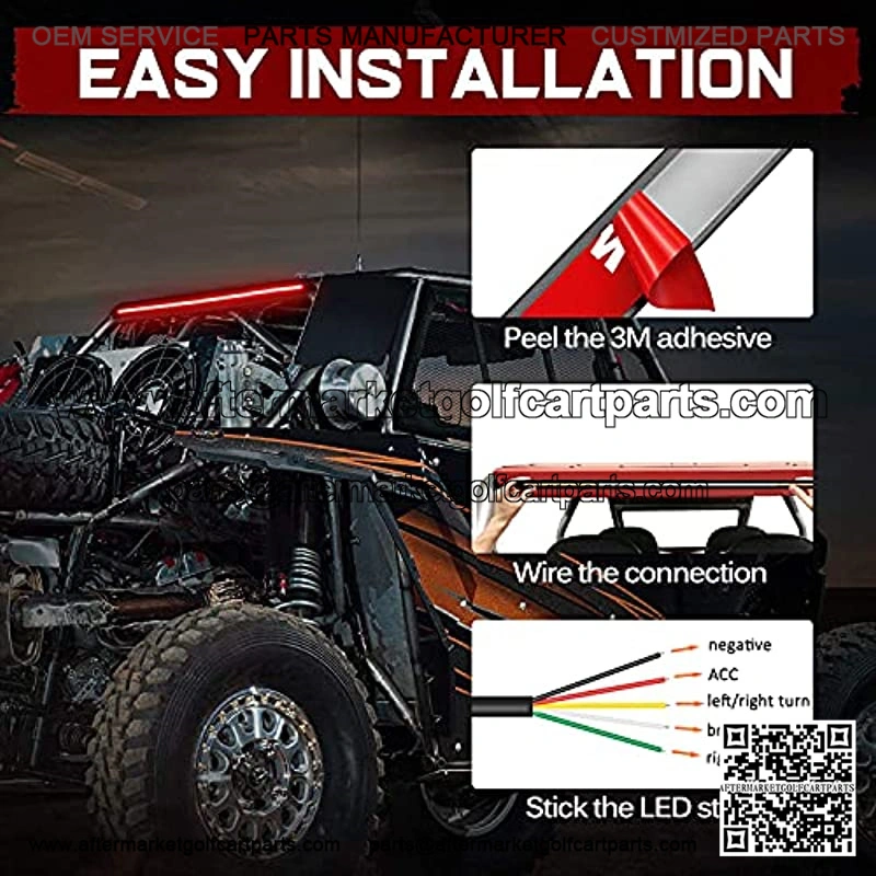 EASY INSTALLATION – Come with industrial strength self-adhesive 3M tape offers a 5X strength for sticking, the UTV tail light strip can easily stuck on any smooth surface for a super invisible look. Simple plug & play installation without drilling required. Can be mounted on locations like rear cross member, hitch cargo carrier, roof rack, tailgate, bumper, etc.