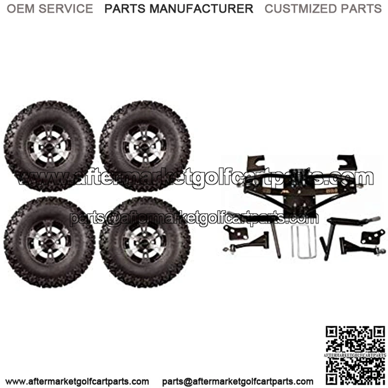 . Includes Lift Kit with 10″ Colossus Wheels & Tires . Fits on Club Car DS Golf Carts . Fits Electric models 1984-2003 . Fits Gas Models 1997 -2003 . Does NOT fit 1984-1996 Gas golf carts . Gas powered models from years 1984-1996 will require new rear shocks (not included in this kit) . Perfect lift for rough and rugged environments . Increased suspension travel for rough terrain . Allows camber and toe adjustments, complete with pivot point grease fittings for easy maintenance . Durable urethane bushings . Allows clearance for up to 23″ tall tires . Installation instructions and all necessary mounting hardware included . This lift kit will NOT fit Club Car Precedent Models** . This lift kit will NOT fit Club Car DS Models outside of year range listed Wheel &Tires: . Includes (4) wheels, (4) tires, (4) center caps and (16) standard lug nuts . Tire size: 22×11-10 . Tires come mounted on 10″ Colossus wheels w/ center caps (might have to remove hub dust covers to allow room for center caps) . Set includes (16) standard chrome lug nuts compatible with Club Car golf carts . It is important that you know the year, make and model of your golf cart before purchasing this lift kit. Also knowing the tire size that your golf cart wheel well can hold is equally important** . Spacers or lift block may also be needed and are available at an additional cost. They are NOT included** . Professional Installation is highly recommended. We do NOT offer technical support**