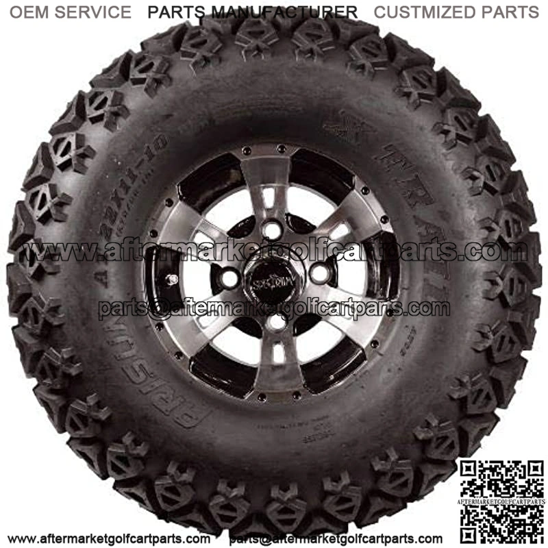Includes (4) wheels, (4) tires, (4) center caps and (16) standard lug nuts . Tire size: 22×11-10 . Tires come mounted on 10. Colossus wheels w/ center caps (might have to remove hub dust covers to allow room for center caps) . Set includes (16) standard chrome lug nuts compatible with Club Car golf carts