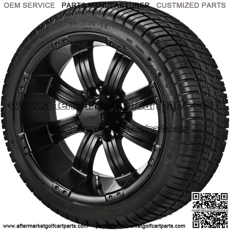 4 Golf Cart 205/30-14 Tires on a 14×7 Matte Black Wheels Free Freight