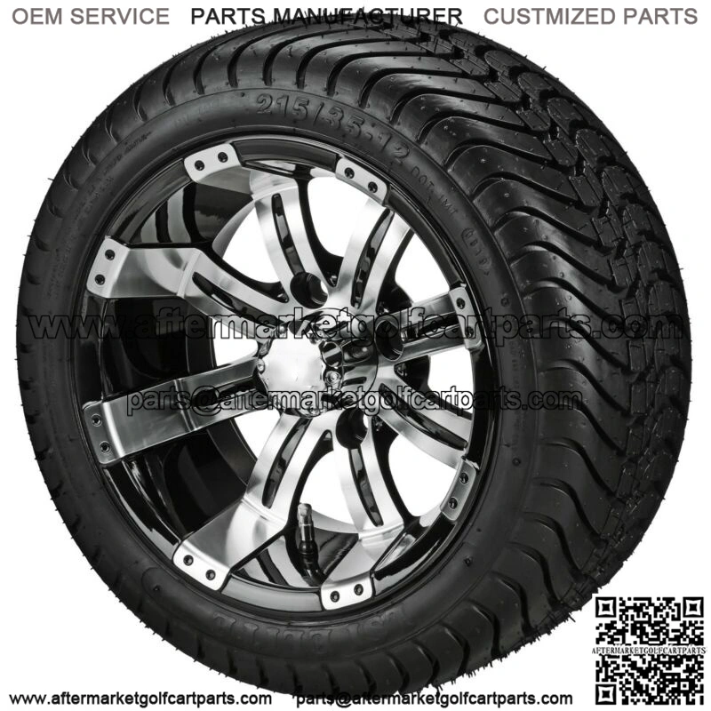 4 Golf Cart 215/35-12 Radial Tires on 12×7 Black/Machined Wheels
