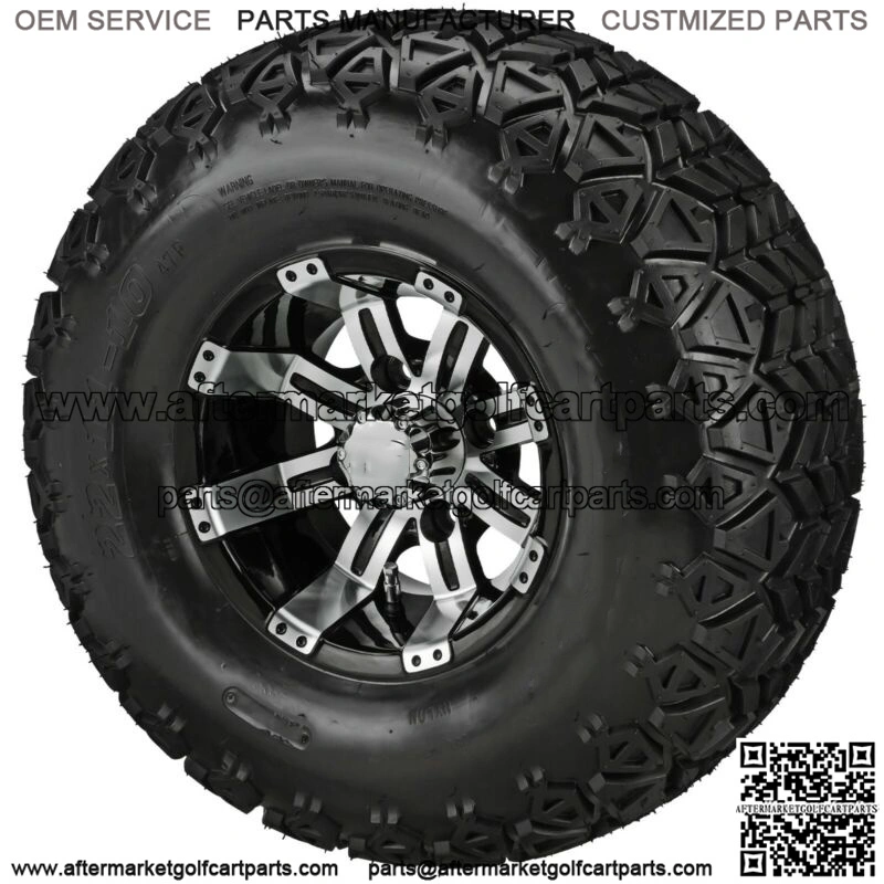 4 Golf Cart 22×11-10 All-Terrain Tires on 10×7 Black/Machined Wheels