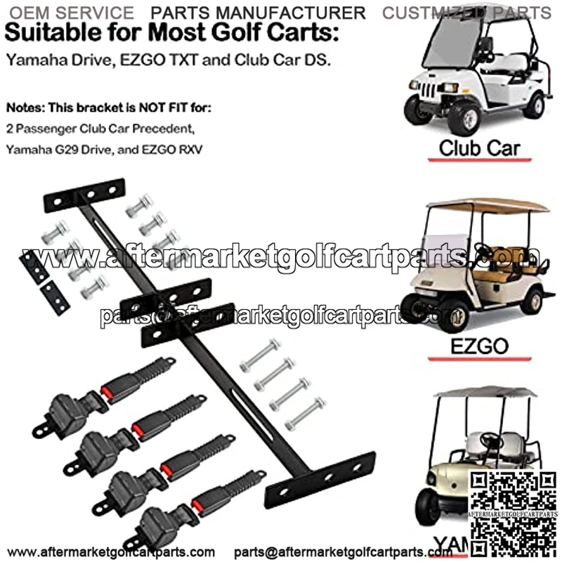 [Wide Application] golf cart seat belts suitable for EZGO TXT, Yamaha Drive, and Club Car DS, if the original factory is a 4-seater golf cart, it is not applicable. Warm Tips: NOT FIT for 2 Passenger Club Car Precedent, Yamaha G29 Drive and EZGO RXV.
