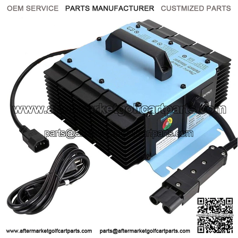 48V 18A Golf Cart Battery Charger for Yamaha G19 G22 with 2-Pin Plug- Golf cart battery charger includes a Powerwise plug for fast and easy charging of all 48 Volt Yamaha G19 G22 golf carts.- Yamaha G19 G22 battery charger made in high-quality aluminum shell to make this Yamaha battery charger golf cart sturdy and durable to use;- Golf cart battery charger main protections: over-temperature protection, short- circuit protection,over-voltage protection, Timing shutdown protection, reverse polarity protection;Intelligent MCU Control Charging: The product can automatically realize multi-stage charging: constant current, constant voltage, etc. – Three charging algorithm can be selected according to the type of battery: 1)Flooded/wet Lead-acid Battery; 2)Maintenance Free Battery; 3)Lithium Iron Phosphate Battery.(PLS NOTE: Confirm the BATTERY TYPE before use);- Yamaha golf cart battery charger with international standard IT chip can ensure your fast charge, and it can achieve high output stability, charging faster (20A) and more accurately than conventional chargers.- NOTICE: Please make sure your connection’s step is consistent with the following instructions before charging. Otherwise, the charger will not work normally. First, connect the battery charger with the 110V power. Next, After 10 second, connect the battery charger and the plug of golf cart. The manual contains important safety and operating instructions for the charger. Read the entire manual before using charger.