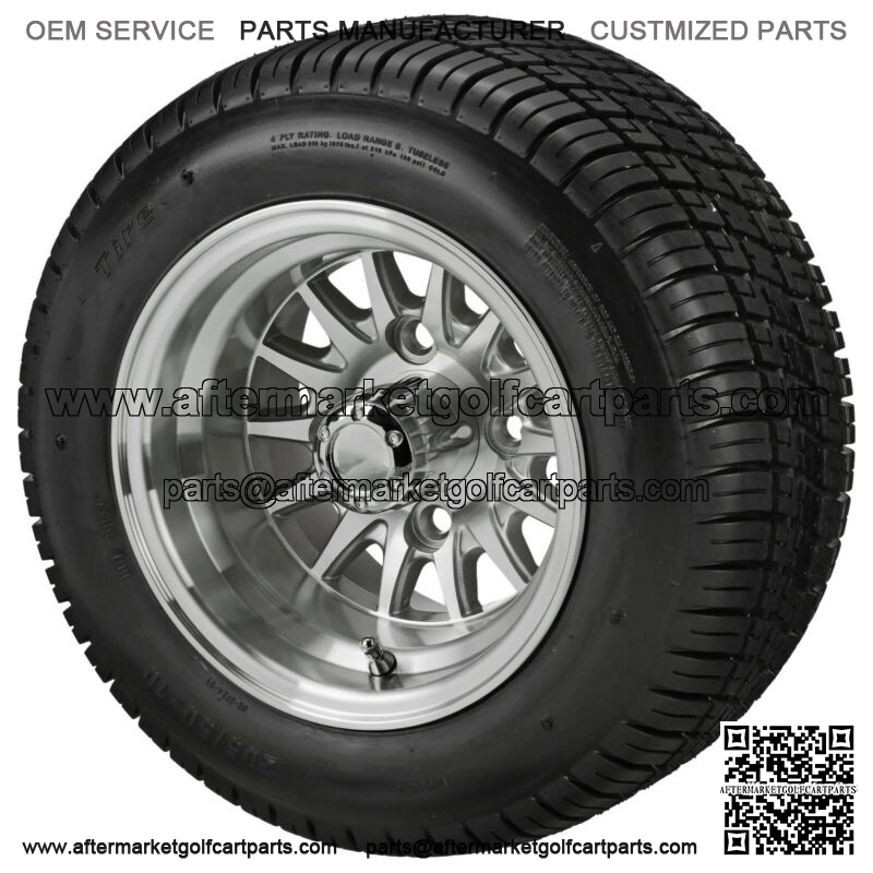 Set of 4 Includes:4- 14-Spoke Wheel 10″ Machined/Silver Wheel4- 205/50-10 DOT Tire4-SS Center Caps16-Lug Nuts
