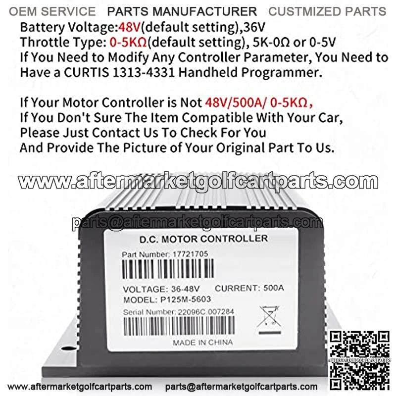 Please Refer to Your Own Part and Make Sure Your Part is 48V, 500A, 0-5K, By default, we will the controller of setting of 48V , 500A , 0-5K