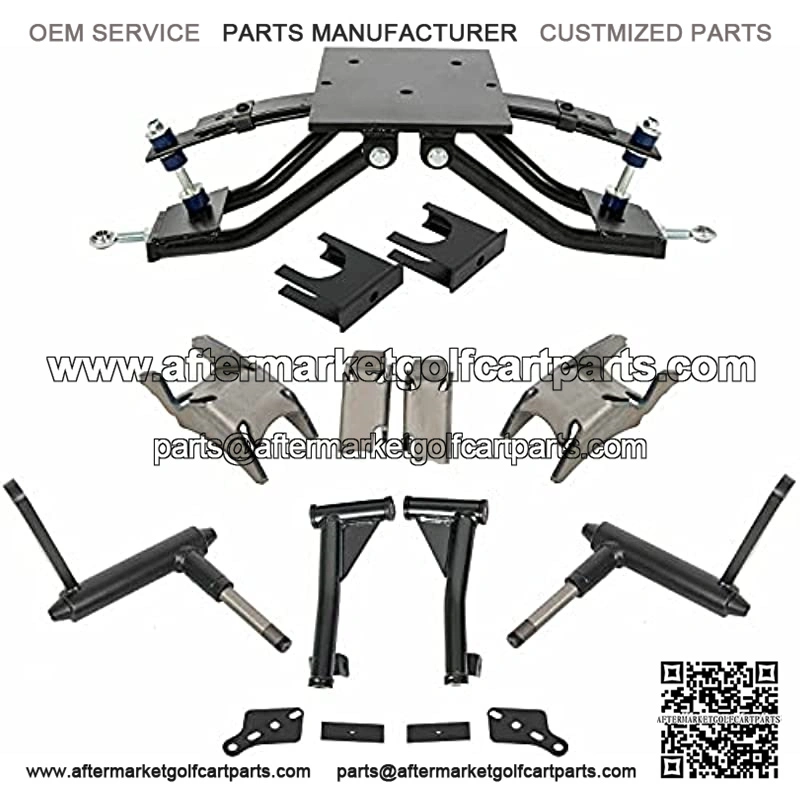 100%Brand New 6″ Heavy Duty Double A-Arm Lift Kit for Golf Cart 1982-2003 DESCRIPTION Manufacturer Part Number: 82-03 6″ AA arm Part Type: Lift Kit Compatible Year: 2003, 1986, 1985, 1984, 1983, 1982 6″ double A-Arm Lift Kit Replaces stock front axle with double A-Arm design. Made of powder coated black steel. All high strength hardware included. Takes an estimated 1-3 hours to install. Includes front and rear lift. Bolt on kit with no modification. Note: A 6″ lift kit allows you to install up to a 23″ tire on your cart. (Heavy duty rear springs are recommended if the cart is heavily weighted to prevent rubbing with 23″ tires). IMPORTANT NOTE: Will work on gas and electric model carts (with STEEL HUB COVERS) YOU WILL RECEIVE THE PRODUCT AS PICTURED