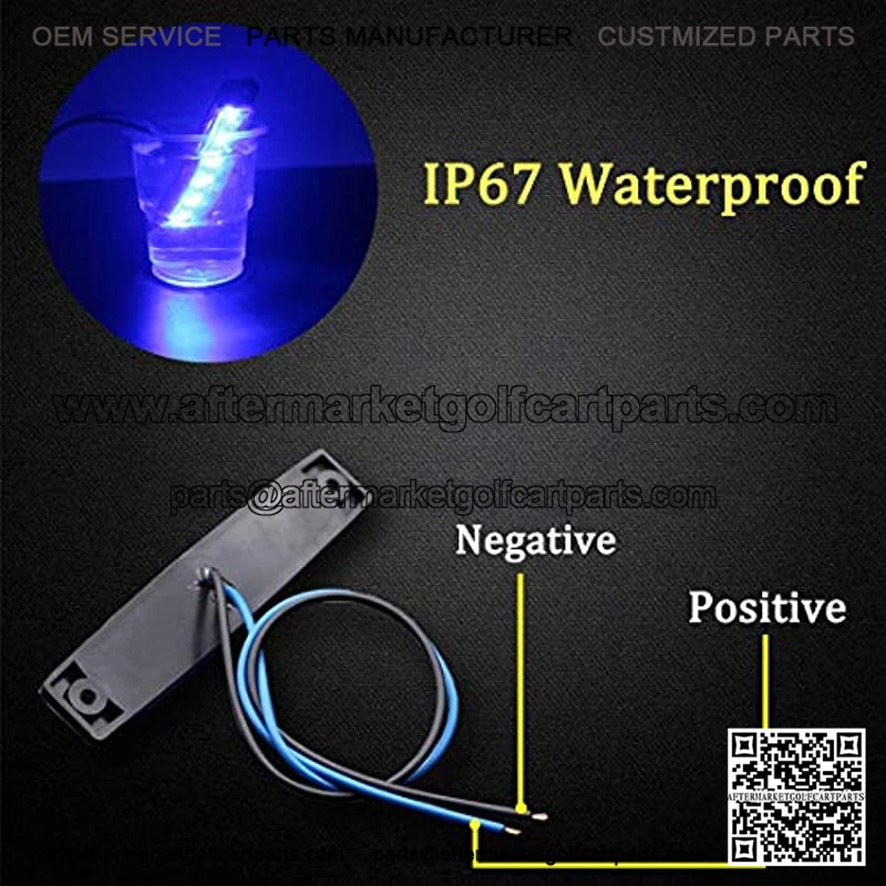 PRODUCT DETAILBlue color. Each bulb size is 3.8″ x 0.8″ x 0.4″. 6Pcs Led inside the each bulb, work for DC 12V and IP67 Waterproof.The bulb is designed to last 50,000 hours, 50 times longer than original bulb.