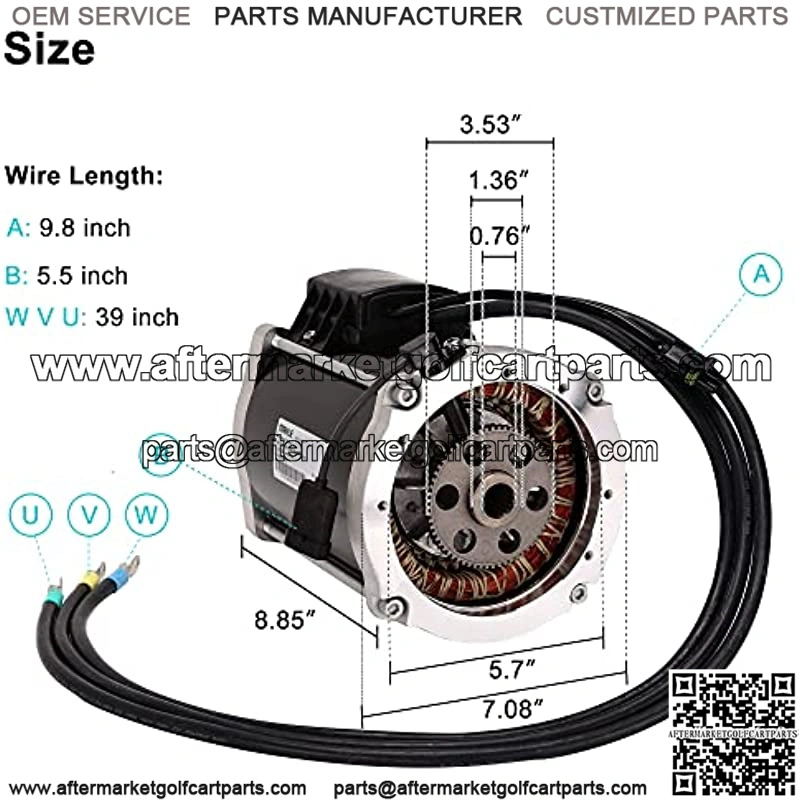 3 Phase AC motor, AMT7156 3.3KW DC 48V Class:H Fits EZGO RXV 2008-2015, 2FIVE 2010-2015 48V electric golf cart Fits Cushman LSV-800 2012-2015 48V utility vehicle Replaces OEM number(s): 611355, 671143, 601882 Flexloom sleeve, mounting bolts and adapter are NOT included, 1-year limited warranty