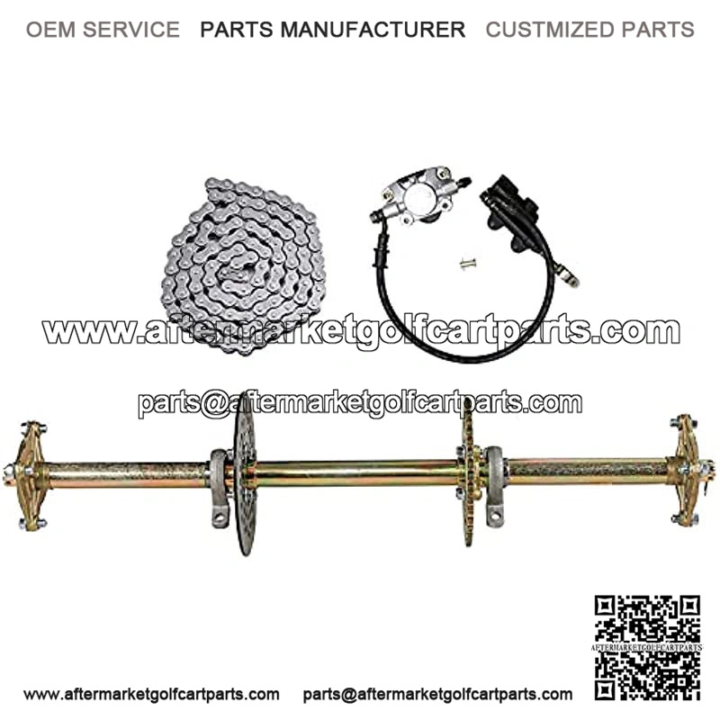 Axle Kit come with: Axle + 428 Chain+ Sprocket + Brake Master Cylinder + Brake Disc + 1″ Pillow block bearings + 4 bolt pattern wheel hub
