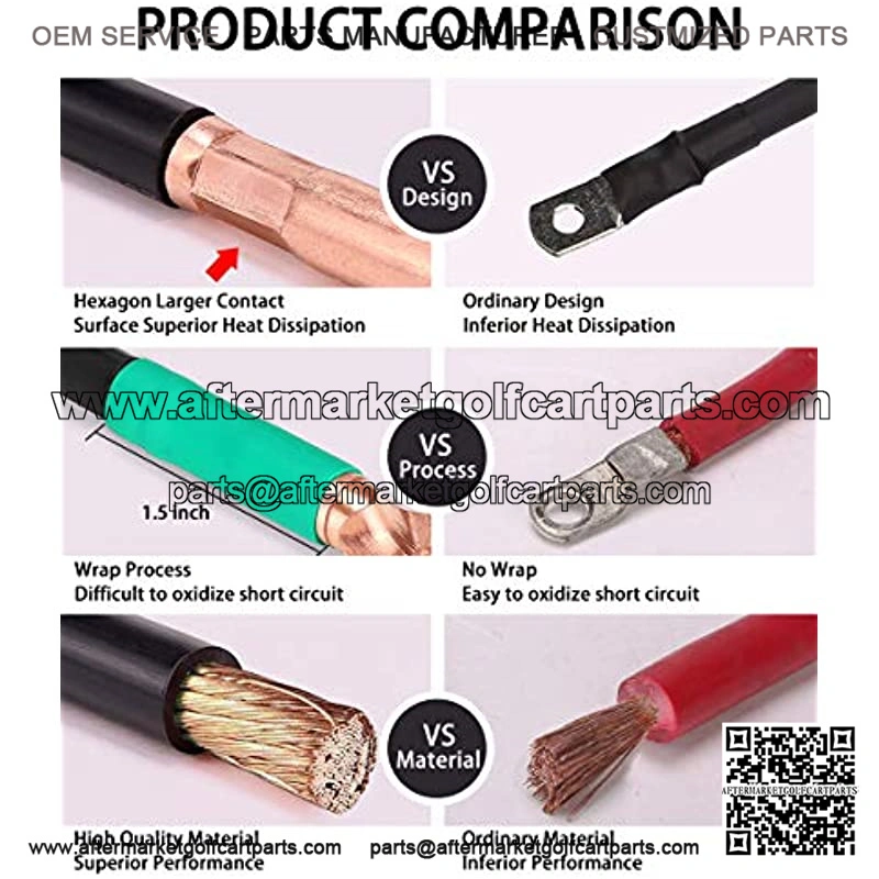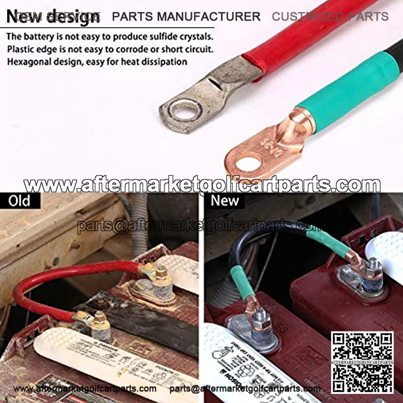 This battery cables feature high strand count copper core ; pure copper wire lugs for more conductivity and less resistance and heat, increase speed, throttle response, extended battery life and cruising range, keep your golf cart running optimally.