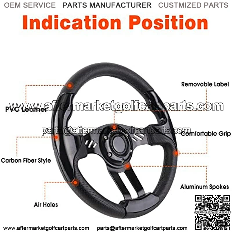 Black Golf Cart Steering Wheel PVC Leather for EZGO RXV & TXT Yamaha Club Car DS and Precedent Steering Wheel