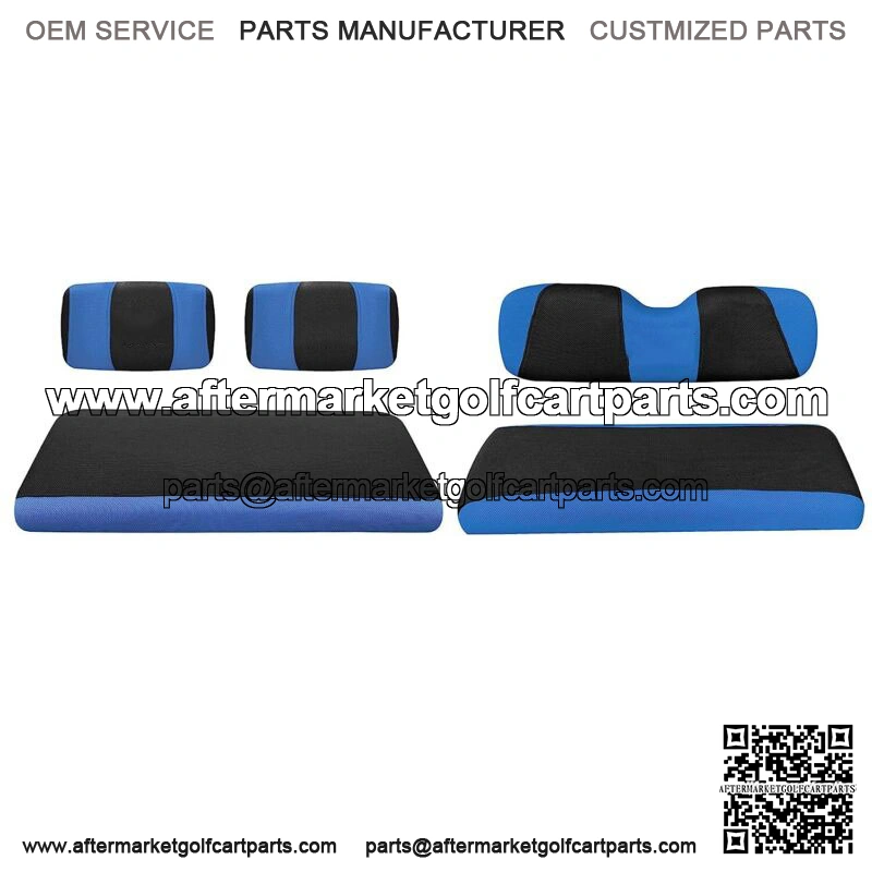 Blue Golf Cart Front Rear Seat Covers for Yamaha G2 G8 G9 G11 G14 G16 G19 G20 G22, Club Car DS Pre-2000- Front and rear golf cart seat covers fits 2+2 passenger Yamaha G2 G9 G11 G14 G16 G20 G21 G22, Club Car DS pre-2000, Tomberlin Emerge.- golf cart seat covers made of air mesh breathable fabric polyester, durable, non-slip and anti-static. The golf cart seat cover protects your seat against dirt, sun, extends the life.- Designed in TWO-Tone(Blue+black), good for dressing up a new golf cart and renew the golf cart with worn out or scratched seat- Toolleadjustable straps and retractable buckle design help you install easily and remove in minutes. If you feel it is not fit, you can just simply adjust the strap.- Easy to install and clean: It will take you few minutes to install the seat cushion cover kit. Machine washable and air dry.- Package includes: 1 set Front seat cover + 1 set rear seat cover. Front Seat Cover Set:Bottom Seat Cover-Size: 42.5″(L)*21.4″(W)*3.9″(H)One Backrest Cover-Size: 18.5″(L)*10.2″(H)Rear Seat Cover Set:Bottom Seat Cover-Size: 37.5(L)”*13.5″(W)*3.5″(H)Backrest Cover-Size: 35″(L)*9.5″(H)Warm tips:1.The front seat with 2 Separate Backrest, The rear seat with one-piece backrest2. Rear seat is much smaller than front one3. We strongly recommend that you can make measurement before place one order. 1 inch size difference acceptable.