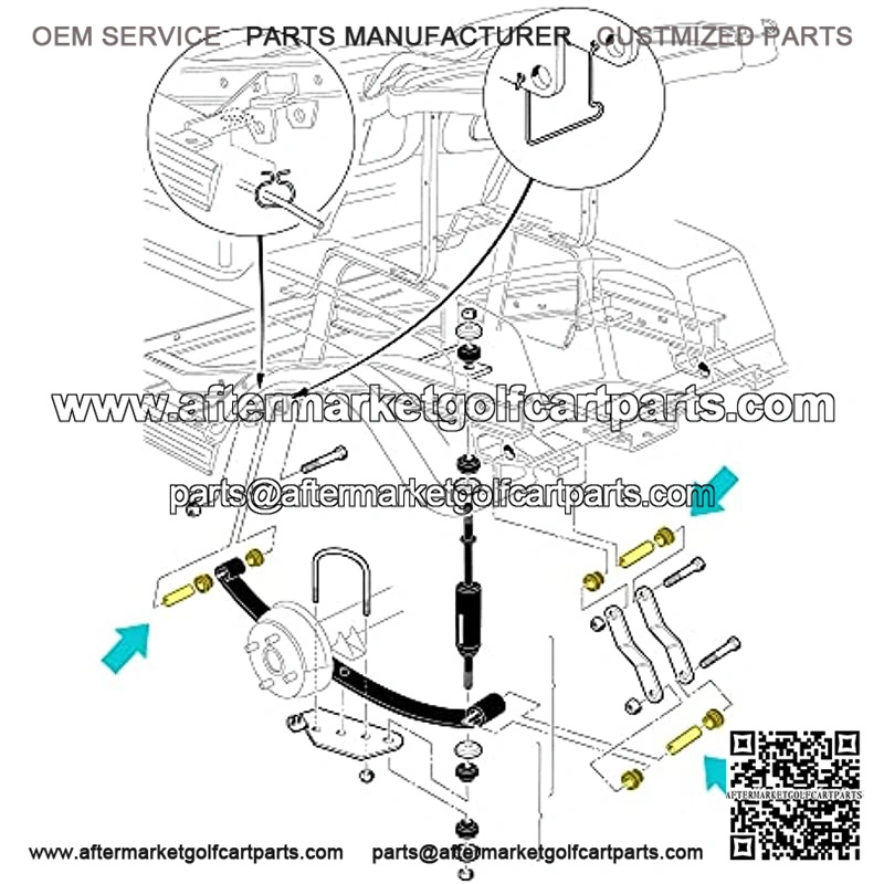 Bushing and Sleeve Kit for Club Car DS and TXT 1994-UP, Golf Cart Front or Rear Leaf Spring & Front Upper A Arm Suspension fit Club Car DS Models Gas & Electric 1981 + UP